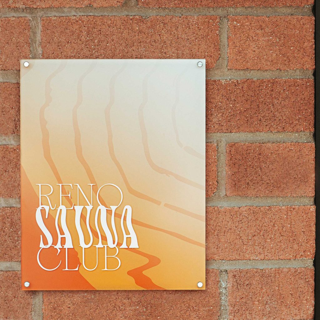 The Reno Sauna Club branding was inspired by hot earth tones, evoking a space where relaxation, rejuvenation, and fun come together. The logotype reflects the wave of heat that envelops you as you enter a sauna, complemented by supporting fonts, ‘Sometimes Times’ to balance the playful with the elegant, while Niveau Grotesk for general use across collateral. A hand-drawn element was introduced to represent the heatwaves, which appeared across collateral and signage throughout the property. This aesthetic not only complements the overall branding of the Best Bet Motor Lodge but also establishes a distinctive identity that can support future growth, potentially expanding into its own spaces across Nevada and further afield.